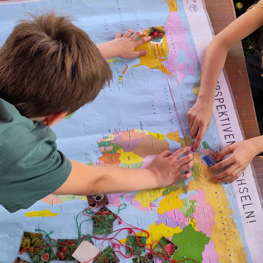 Das Bildungskonzept soll den Schüler:innen die globalen Zusammenhänge des Lebensmittelsystems verdeutlichen. Sie können auf dem Acker direkt erfahren welche Gemüse in welcher Jahreszeit hier vor Ort wachsen und welche Lebensmittel immer oder teilweise importiert werden. Die Ursprünge unserer Lebensmittel werden untersucht und in diesem Zusammenhang wird das Konzept des Weltackers vorgestellt, um zu verdeutlichen, an welchen Stellen wir in Europa über unsere Verhältnisse leben.