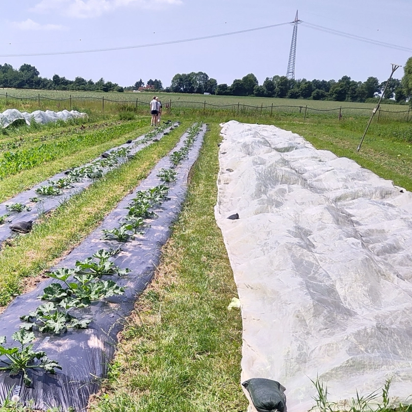 Um an die Lebenswelt der Schüler:innen anzuknüpfen wird anschließend das Flächenbuffet thematisiert und besucht. Mit dem Vergleich verschiedener Gerichte mit pflanzlichen und tierischen Produkten können die Schüler:innen erleben welchen Einfluss ihre eigenen Entscheidungen auf das Lebensmittelsystem haben können. Als wichtiger Aspekt, der die Selbstwirksamkeit der Schüler:innen und ihre Wertschätzung zur Landwirtschaft stärkt arbeiten sie auf dem Acker mit, wo je nach Jahreszeit verschiedene Arbeiten anliegen (Aussaat, Pflanzung, Bodenbearbeitung, Pflege, Ernte).