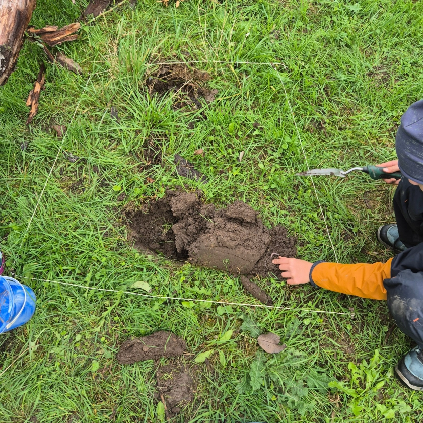 Nach einer Einführung mit einem Rätselspiel und praktischen Aufgaben - wie dem Füttern der Schafe - erkunden die Kinder die Streuobstwiese in Kleingruppen mittels Stiller Naturbeobachtung. Dabei lernen sie die Artenvielfalt des Bodens kennen und erfahren mehr über die ökologische Kreislaufwirtschaft. Ein Highlight ist das Anfertigen von Gipsabdrücken: Rind, Pferd und Schaf werden miteinander verglichen. In einem anschließenden Spiel wird der Kreislauf auf dem Betrieb und in der Streuobstwiese verdeutlicht.