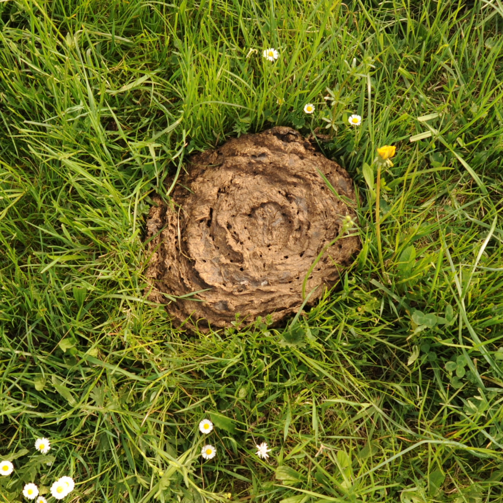 Erklären: Der Fladen verschwindet allmählich in der Erde, wird von Mikroorganismen zersetzt und dient so der Pflanzenernährung.